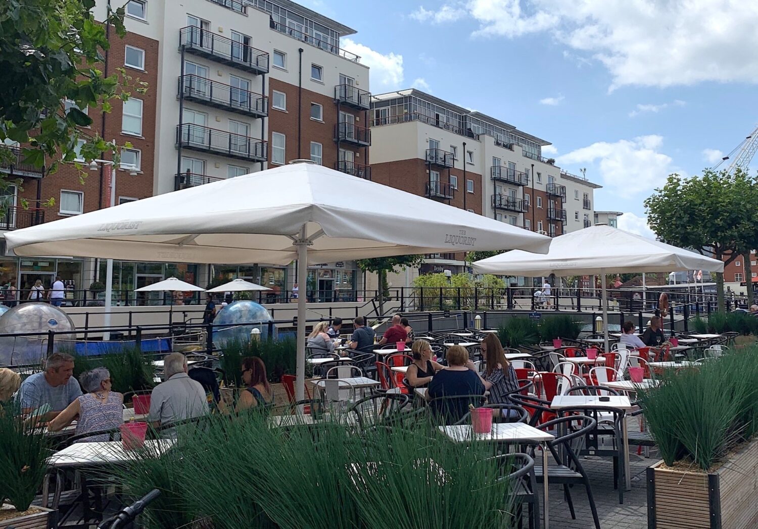 Aztec Parasols at a new opening of a restaurant. Are you ready for alfresco dining and drinking?